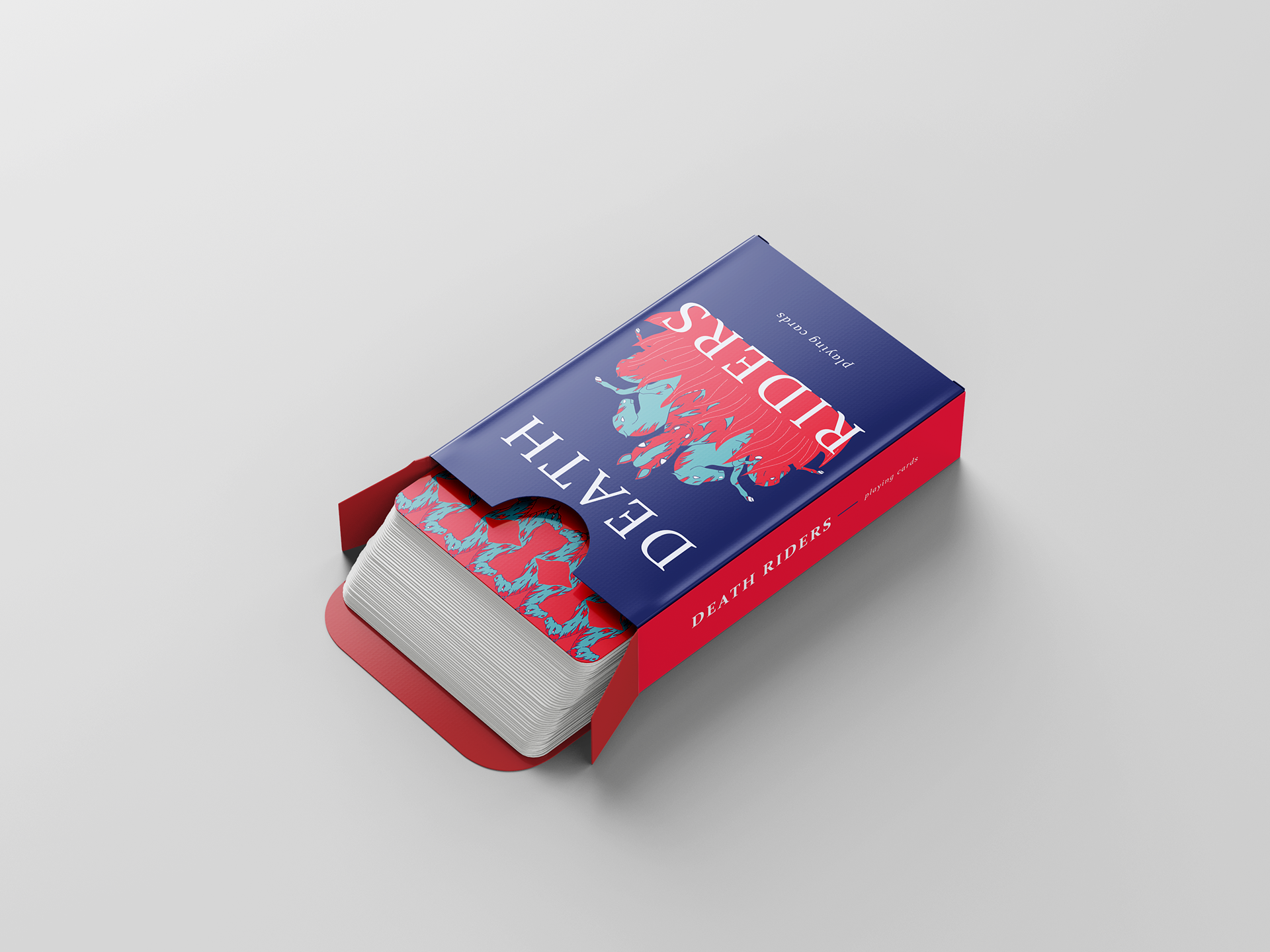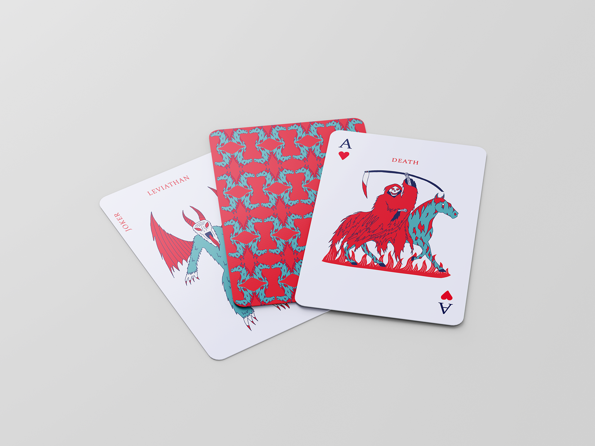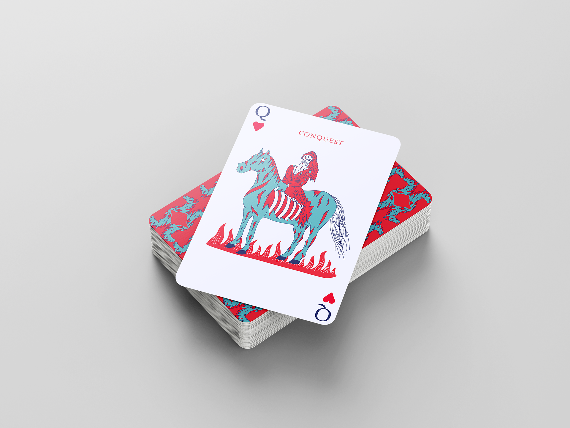 This was another branding project, but it was less intensive on the packaging and required more emphasis on the card graphics. I highly enjoyed this project because I had never heard of a deck of cards based on the "Four Horsemen," so I thought it would be a cool idea to explore. This was my first time working with a limited color palette, which I found to be challenging, but effective.