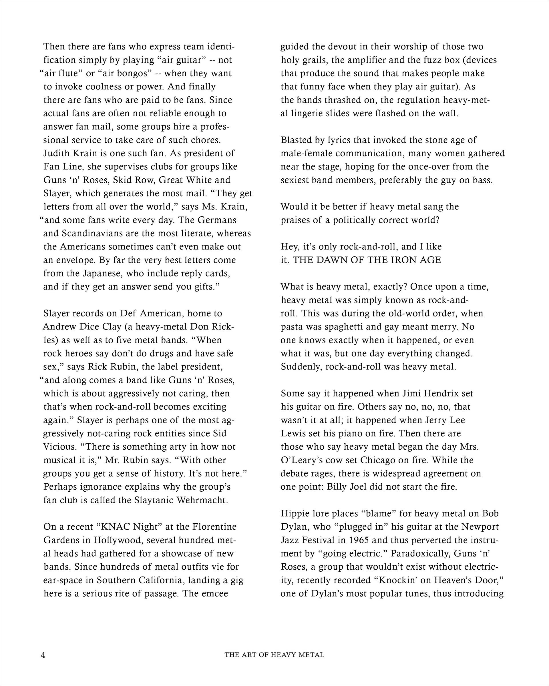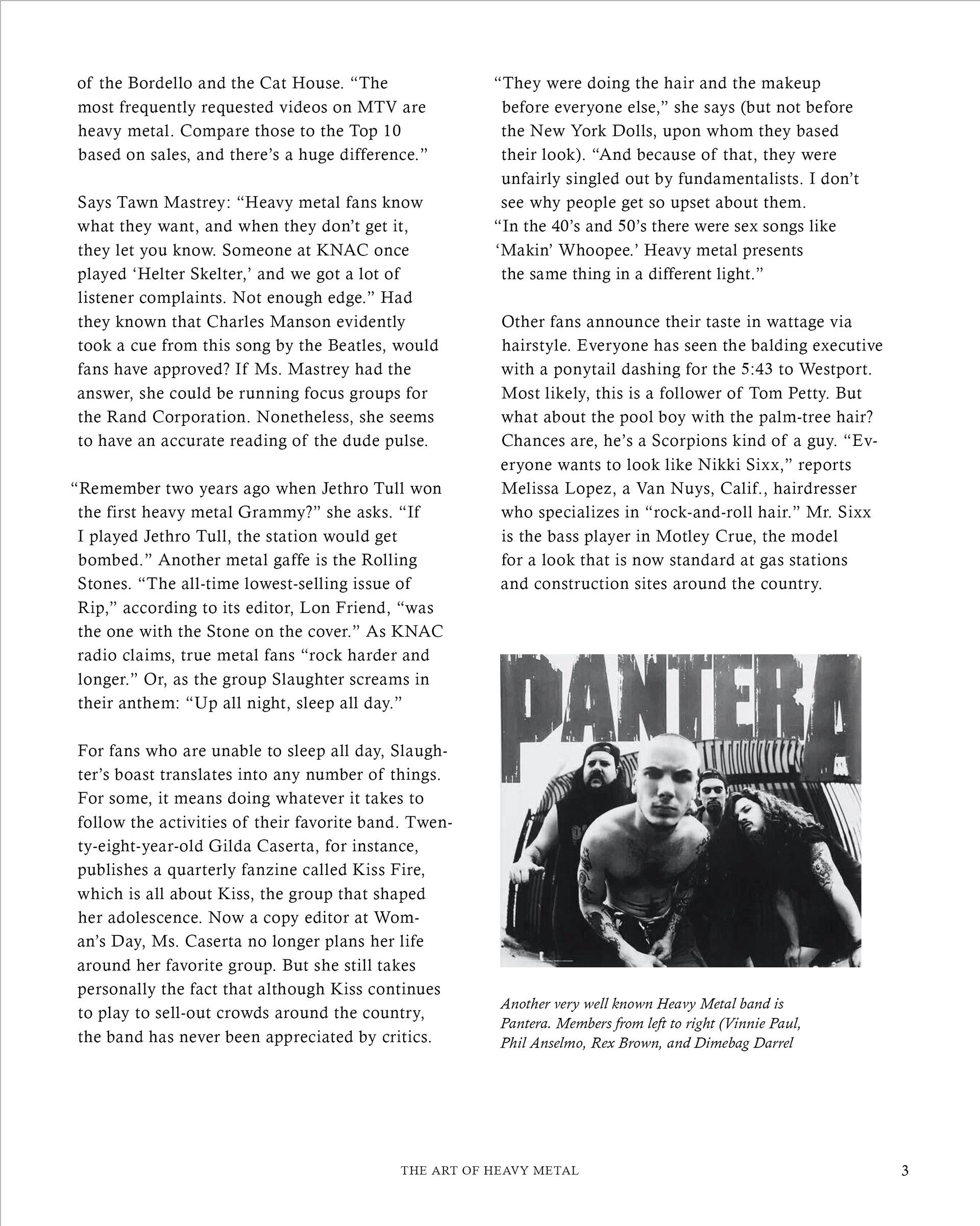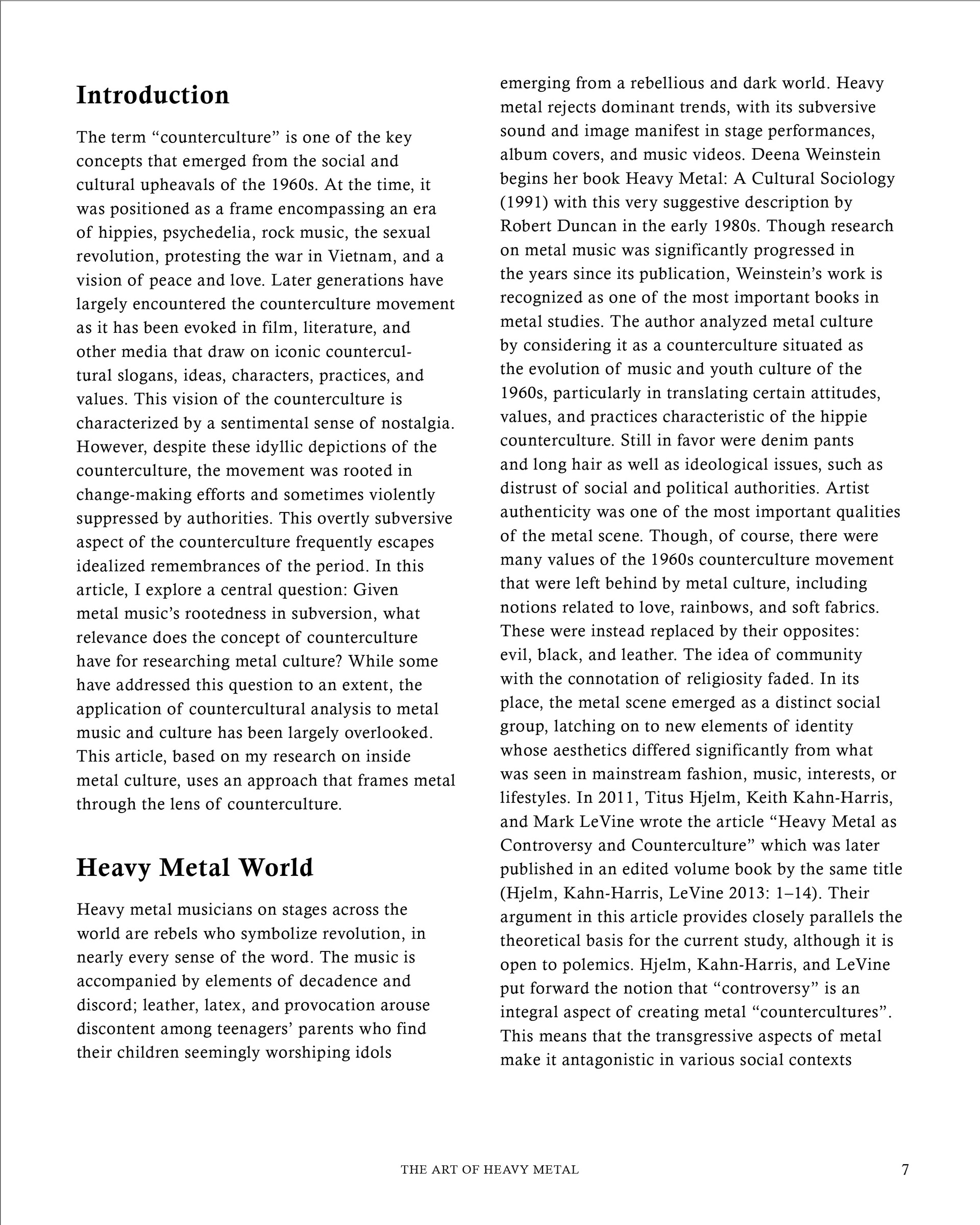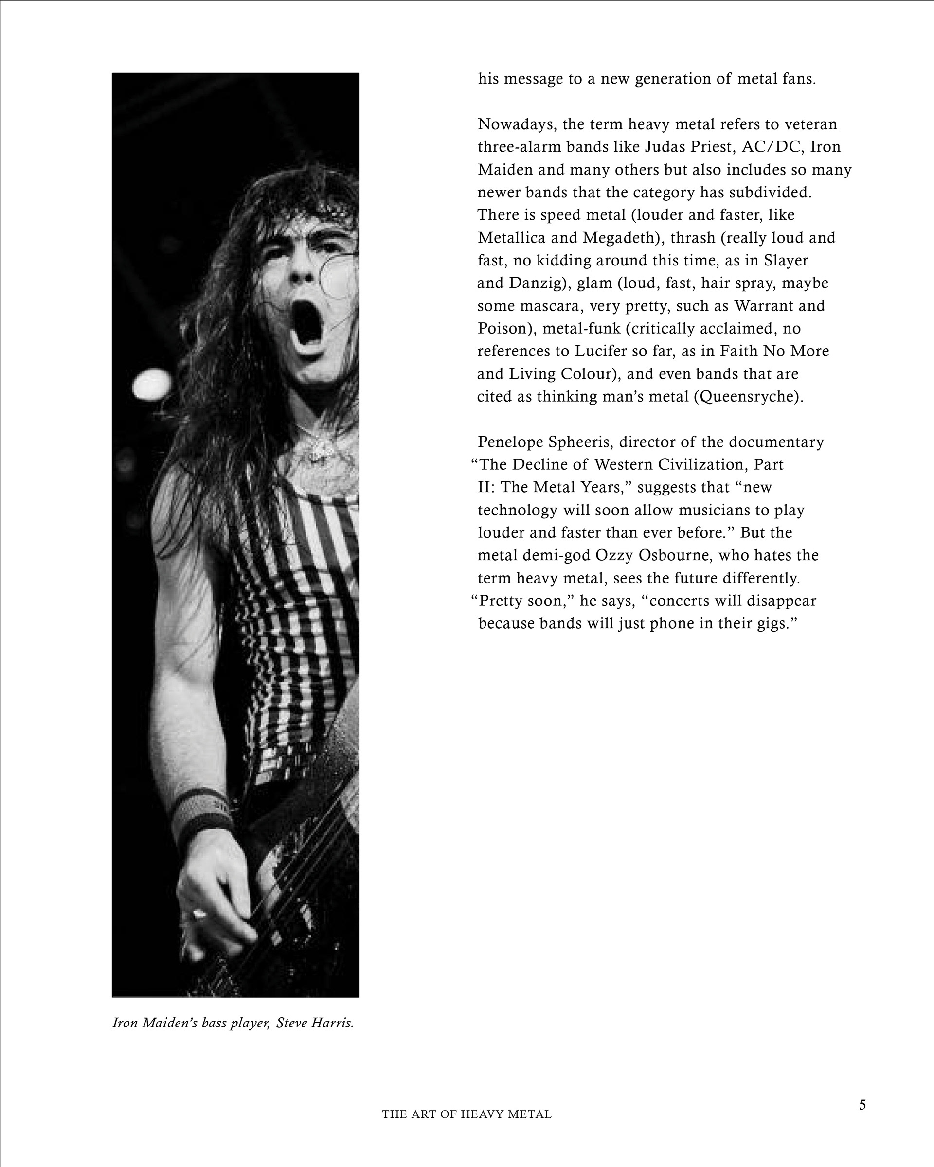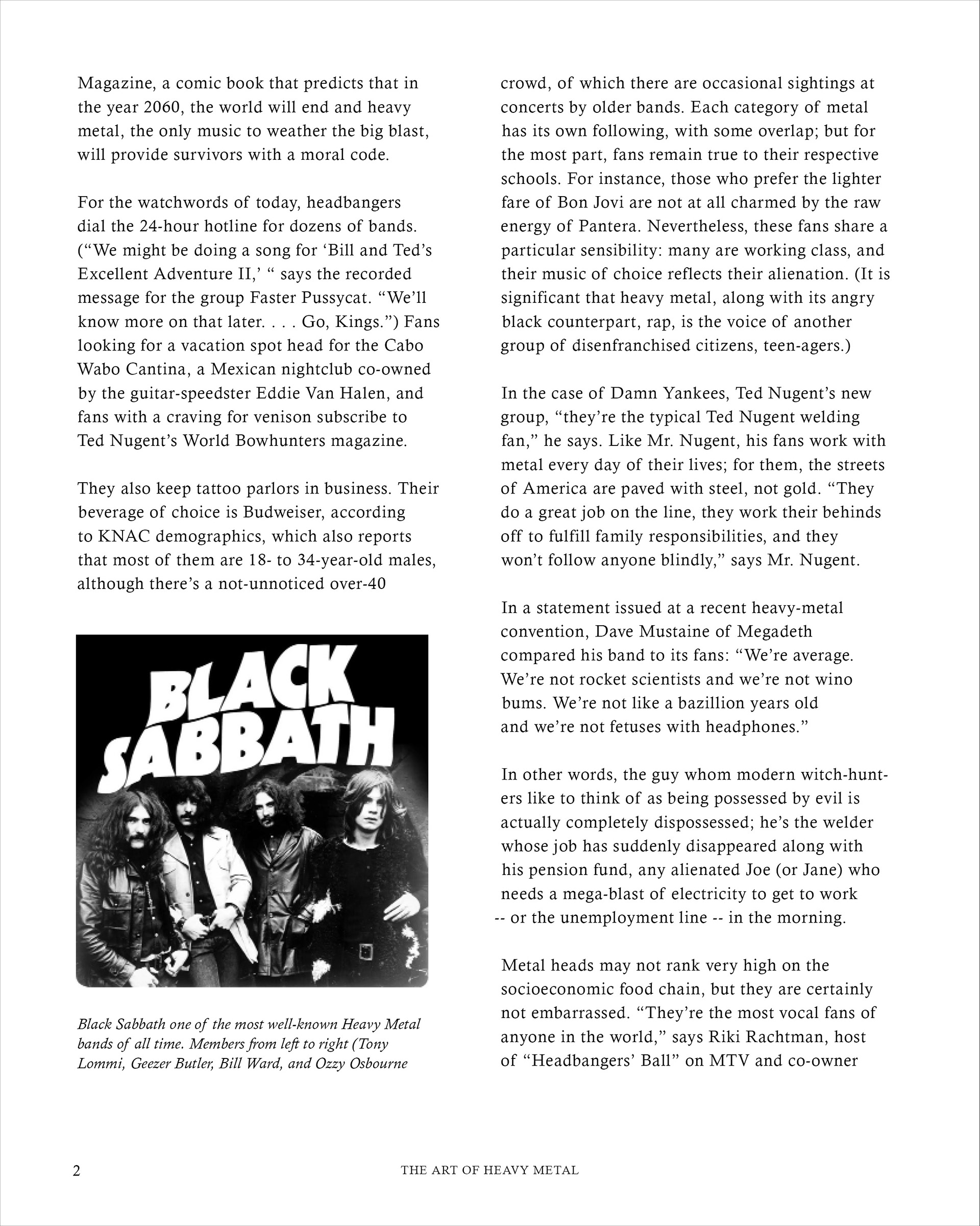 "The Art of Heavy Metal" is a 20-page spread concept for a fictitious heavy metal magazine, named "METALMAG". This edition of the magazine was focused on breaking down the stigmas and ideas revolved around the genre of music, the people who support this specific genre, and anything in between. Both articles used within the magazine were written at different points in time, which make for an interesting comparison on how viewpoints have evolved in the last 30 years, alone.